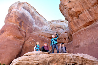 On Day 2 we left our campsite by Corona Arch and entered Arches National Park, visited the visitor center, and went on some mini hikes along the way to Devil's Campground. Whitney was ecstatic to find a $5 bill on our first hike! We had the best climbing rocks right in our campsite so the kids never got bored.